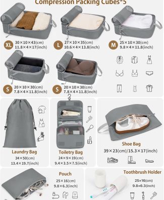 €27.99Introducing our Compression Packing Cubes 10 Sets, the ultimate solution for organized and stress-free travel! Say goodbye to the chaos of packing and hello to efficient and neat storage with these packing organizers. Our Extensible Suitcase Organiser Bags are designed to fit perfectly into your luggage, maximizing space and keeping your travel essentials in order….